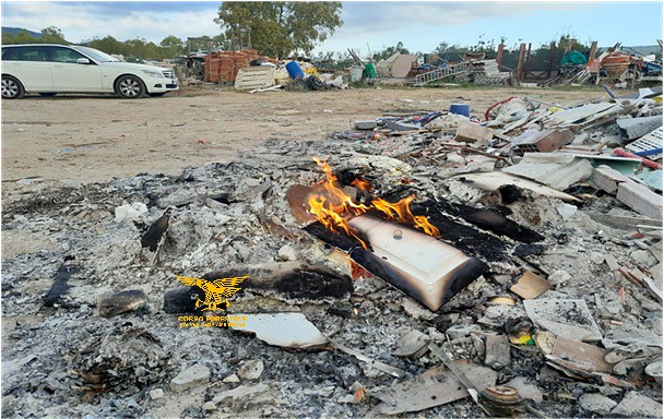 Durante il sopralluogo, il personale del Corpo Forestale ha colto lāuomo mentre alimentava un rogo esteso per circa cinque metri quadrati. Le fiamme consumavano legno verniciato, plastica, vetro e alluminio, materiali che sprigionano sostanze nocive durante la combustione. Le ceneri presenti sul suolo hanno confermato una pratica abituale e reiterata.