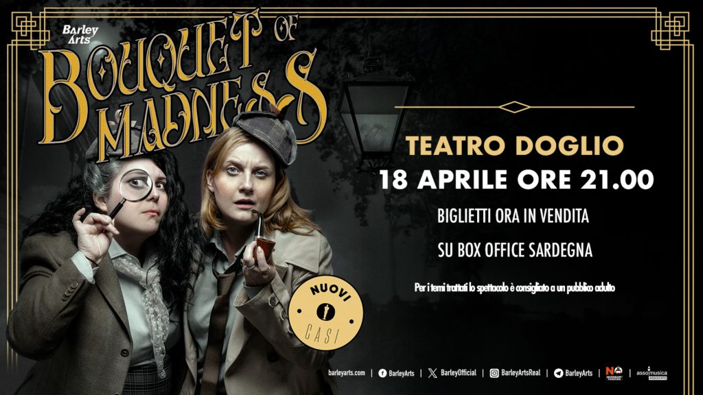 Il podcast true crime più amato d’Italia arriva a Cagliari con l’unica tappa in Sardegna del tour 2026. Bouquet of Madness sarà al Teatro Doglio sabato 18 aprile 2026 alle ore 21.00, portando sull’Isola lo spettacolo che sta registrando sold out nei principali teatri italiani.