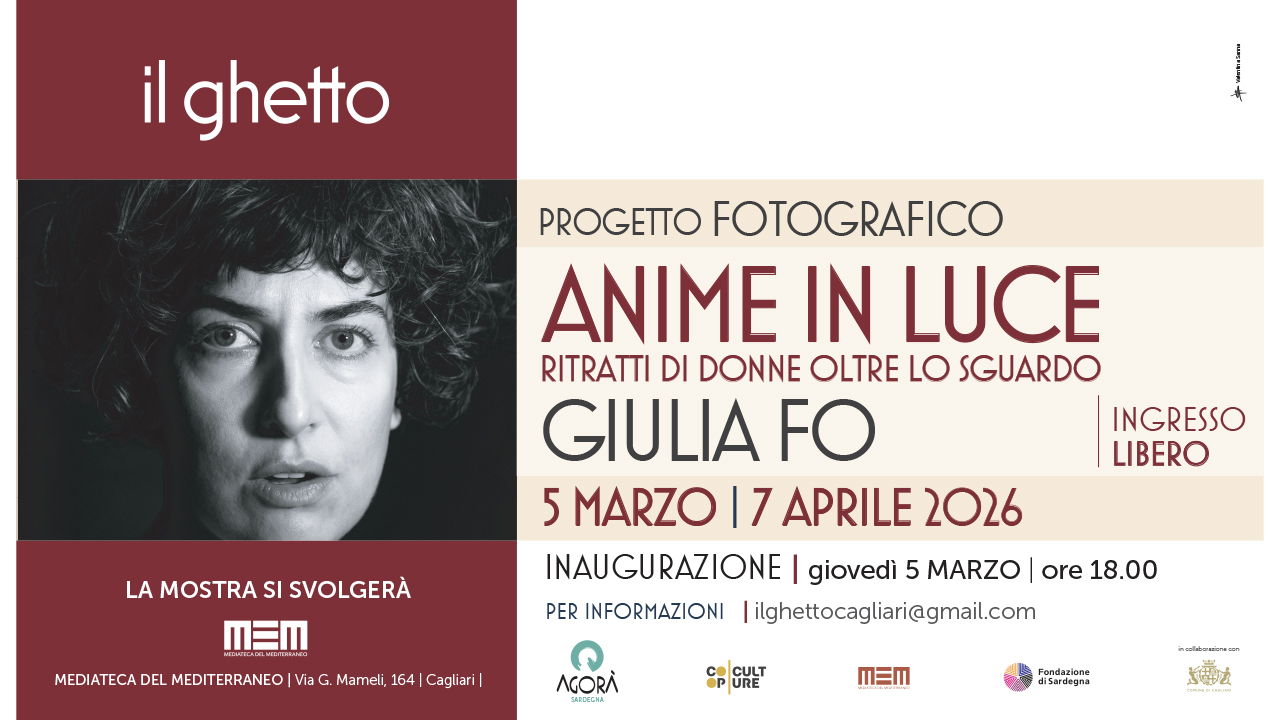 In occasione della Giornata Internazionale della Donna, il Centro Comunale d’Arte e Cultura Il Ghetto di Cagliari presenta la mostra fotografica “ANIME IN LUCE – Ritratti di donne oltre lo sguardo” di Giulia Fo, organizzata da Agorà Sardegna e Coopculture in collaborazione con il Comune di Cagliari, la MEM – Mediateca del Mediterraneo e con il contributo della Fondazione di Sardegna.