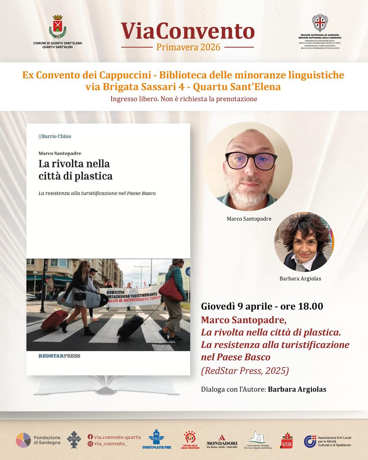 Ospite Marco Santopadre con il libro “La rivolta nella città di plastica. La resistenza alla turistificazione nel Paese Basco” (RedStar Press, 2025), in dialogo con Barbara Argiolas.
