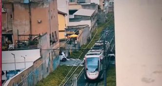 Scontro tra Mini Cooper e metro in via Puccini a Cagliari, due feriti