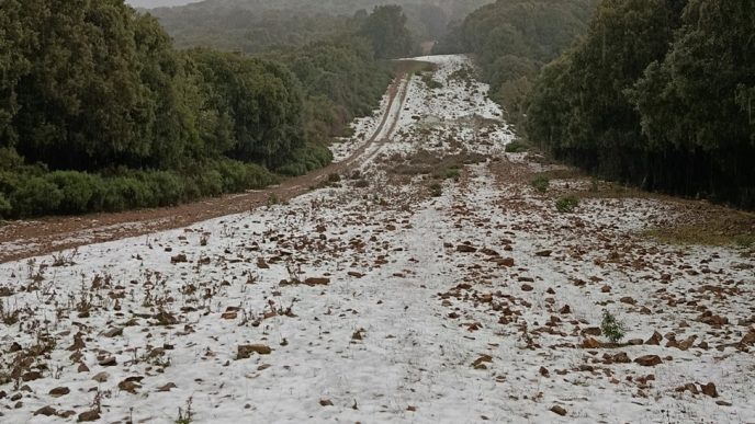 Spettacolo a Domus de Maria, la neve imbianca la foresta di Is Cannoneris