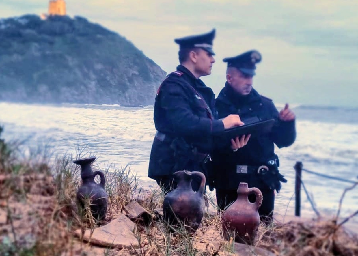 Il forte moto ondoso delle ultime ore ha eroso la spiaggia, facendo riaffiorare manufatti rimasti nascosti per secoli. I carabinieri della Stazione di Domus de Maria hanno raggiunto rapidamente l’area dopo la segnalazione del singolare ritrovamento. Fin dai primi riscontri visivi, i militari hanno riconosciuto il valore storico delle strutture, intervenendo per proteggere un bene di grande interesse collettivo.